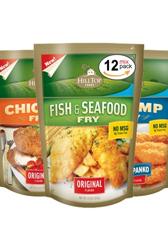 - Hilltop Foods Variety Case, 12 packs (120 total ounces) , 4, 10-ounce packs of each: Chicken, Fish & Seafood, and Crispy Panko Fry Breading Products