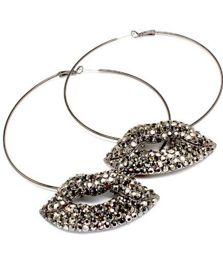 Basketball Wives Hematite, This earring set features crystal lips on large hoop earrings,hoops measure 3 3/4 inch, basketball wives style,nickel and lead free. These would make a wonderful addition to your jewelry collection.