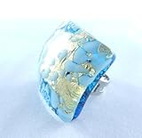 Venice Buys - Venetian Masks , This is amazing, one-of-a-kind ring made from Authentic Murano Glass! Venice Buys is the exclusive distributor of this unique jewelry, which ONLY comes from the island of Murano, off the coast of Venice, Italy. Murano has been well known for their famous glass making since the 10th Century! The way the glass is made, and the pigmentation and colors put into the glass is kept completely secret, which makes the glass highly coveted. Each piece of jewelry is individually hand made. True Murano glass like this jewelry has extremely vibrant colors! The ring is made from Authentic Murano Glass. The glass has a light blue and gold design. The ring has an adjustable silver hoop. The glass is 2.5cm squared. The back of each piece of jewelry are stamped with Murano, to show authenticity. (Read More)